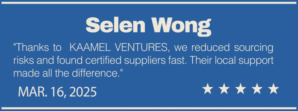We conduct thorough supplier assessments based on your specific needs. We verify capabilities, certifications, and compliance to ensure you work only with reliable, reliable, qualified manufacturers. With KAAMEN VENTURES you save time and reduce sourcing risks.
